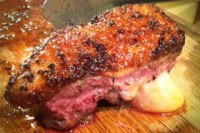 I ended up with duck breast stuffed with baby swiss, seasoned with anise, salt, and pepper with a braised fennel and orange zest compote. And it totally friggin worked! I had too much cheese in this preliminary version and it overpowered the rest of the flavors, or so said my taste-tester poker boys, but with a few minor adjustments I think this might actually be a book-able recipe..