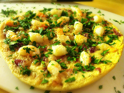 That being decided, in my never-gets-old morning routine over coffee of perusing the Epicurious and Bon Appetit websites I came across Flatbread with Shrimp and White Bean Hummus. Appealing not only because it’s puuurdy and would be relatively light on the stomach, but I already had everything in the house- Boo. Yah.