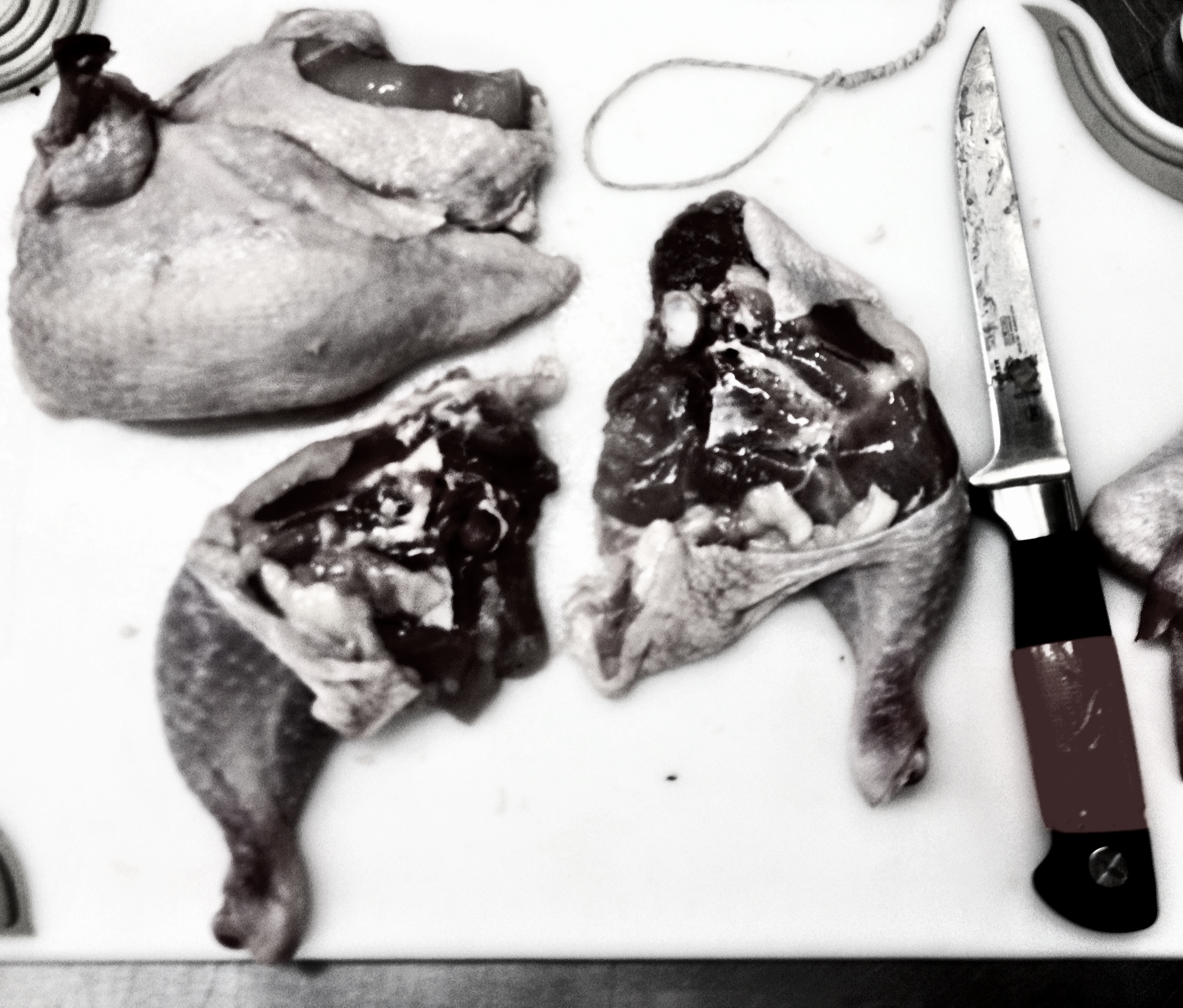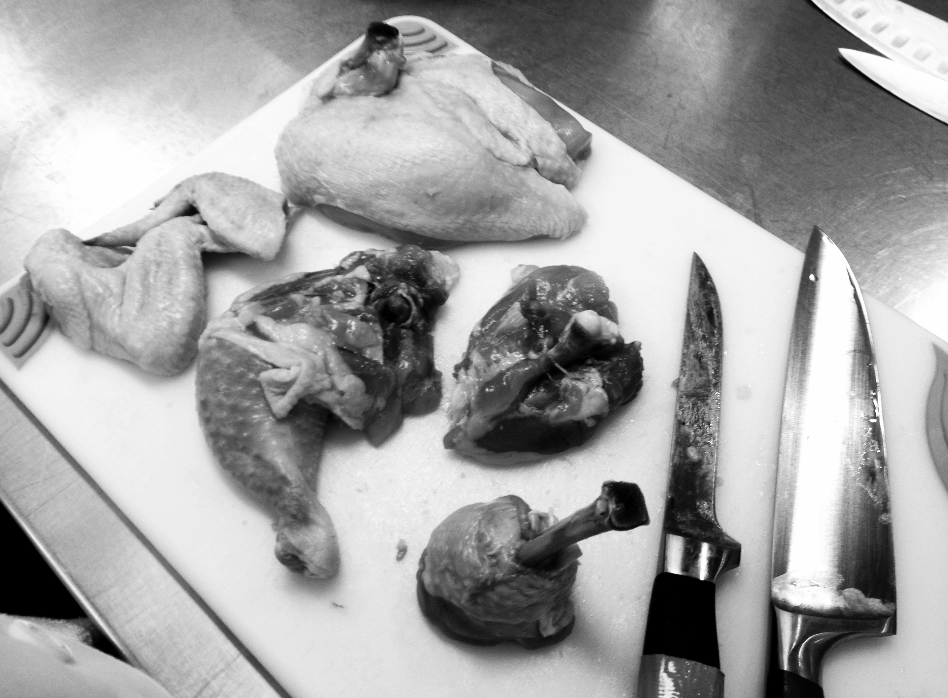Today we just got chickens.  But we got to break ’em down, french some bones, AND make these funky looking drumstick pops that can stand up on their own!!