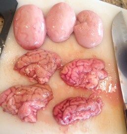 The brains we just did in a traditional way and poached in seasoned milk then panko crusted and fan fried.